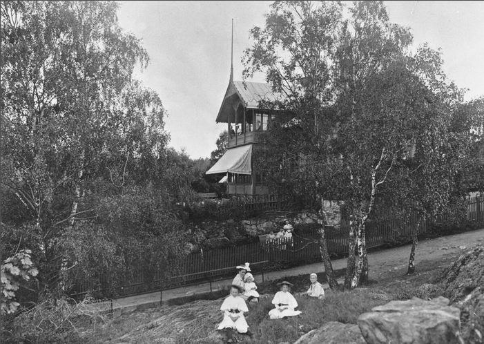 Här uppe på berget bodde många av arbetarna på Finnboda varv i träbaracker. Husen ovan låg mellan kullen du står på och stora HSB-huset mitt emot. Disponentvillan nedan låg lite längre bort på berget, mitt emot ICA Finnboda, ovanför den s.k. Ingenjörsvillan som fortfarande finns kvar i dåligt skick. Undrar om disponentens barn fick leka med arbetarungarna?